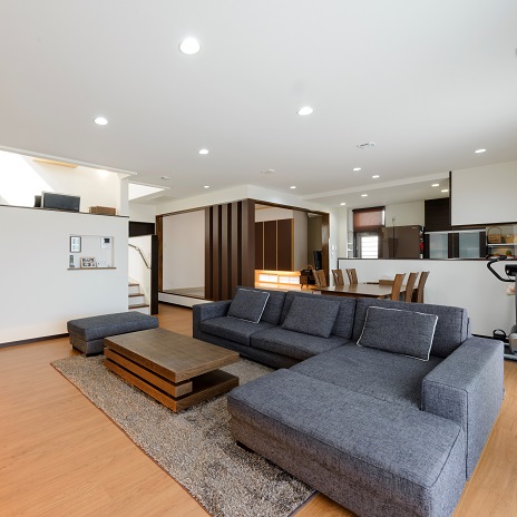 ビルトインガレージ・趣味室・スキップフロアなどこだわりの空間を設けました。また使いやすさを考えたキッチンや家族が自然と集まるリビングなど快適に過ごせる空間も実現でき、家族全員が満足して暮らせています。