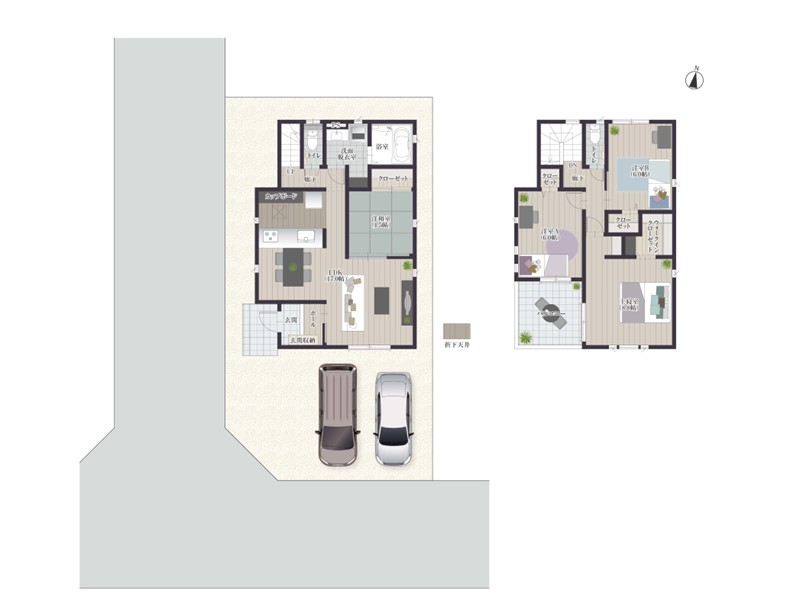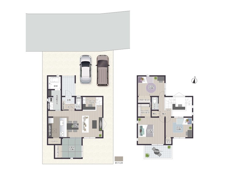 全棟、駐車スペースを2台分確保!お車を2台持ちのお客様やお友達が遊びに来た時も便利です♪