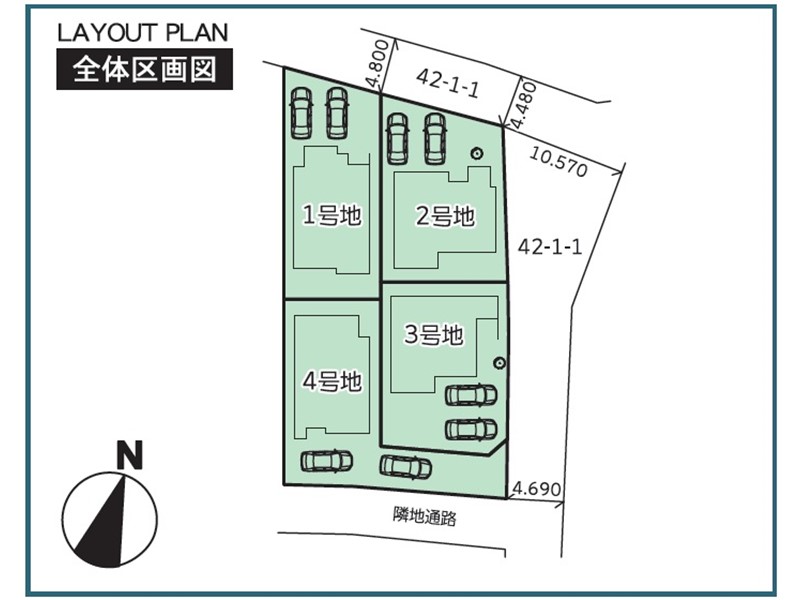 | 私道負担・道路 | 道路幅:4.4m~10.5m、アスファルト舗装、公道、私道負担無し |
