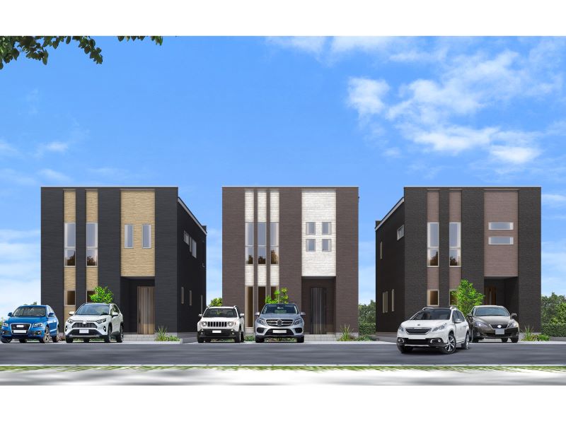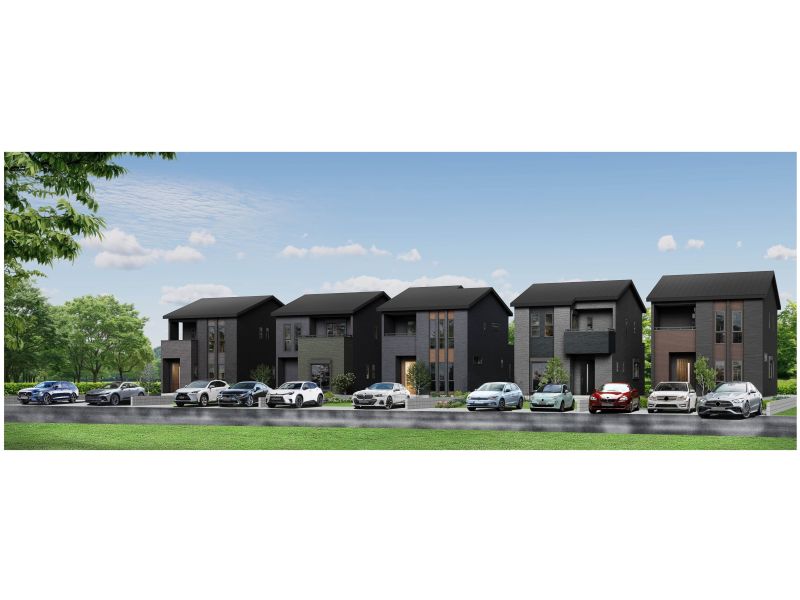 豊富な収納スペースと充実設備を備えた全5邸の高品質戸建分譲住宅の街並み。家事動線の良さと収納力が魅力の間取り。徒歩圏内に充実した周辺環境。
