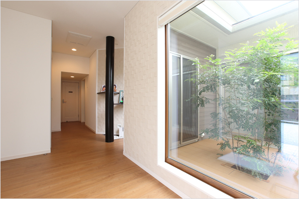- 1階に中庭をつくることで、大きな窓から光が差し込み、とても明るく気持ちの良い空間が実現しました。