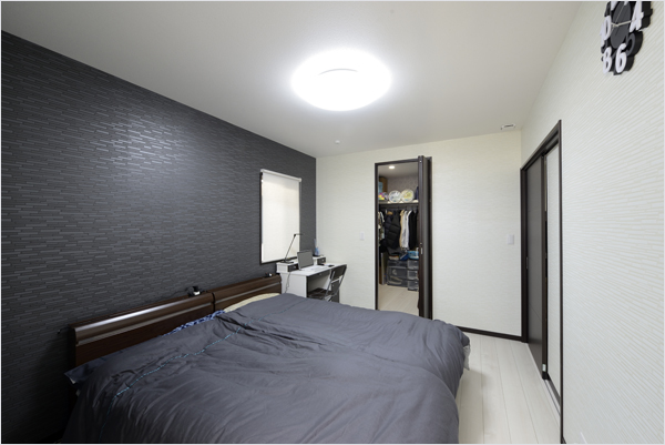 外壁にはグレードの高い資材を採用し、屋根を片流れにすることでスタイリッシュな外観を演出しました。 他にはない個性的な家をつくりたいと考えており、ひと部屋あたり2~3種類のクロスを使用し、お洒落な空間にしました。 さらに、豊富な収納や太陽光パネルを採用することで日々の暮らしにも配慮しています。