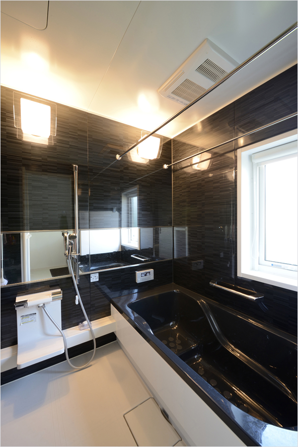 - 浴室は黒を基調にすることにより、上質で心が落ち着く空間になりました。