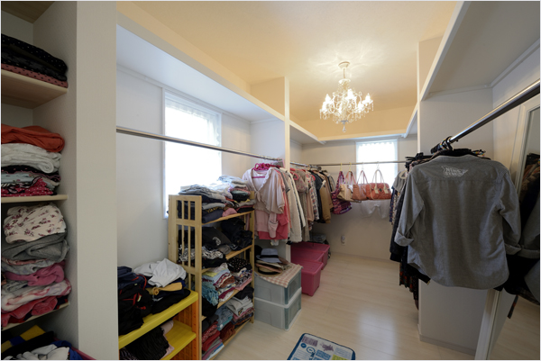 スタイリッシュな外観は、白をベースにコーディネートしました。1階2階に連なる3連の縦長窓や大きな窓を設置することで、通風や採光を確保しています。 多趣味で物が多いため、豊富な収納を確保することで、部屋に物を置くことが少なくなり散らかることがなくなりました。 動線や収納をこだわることで、とても快適で家族5人伸びやかに生活を楽しんでいます。