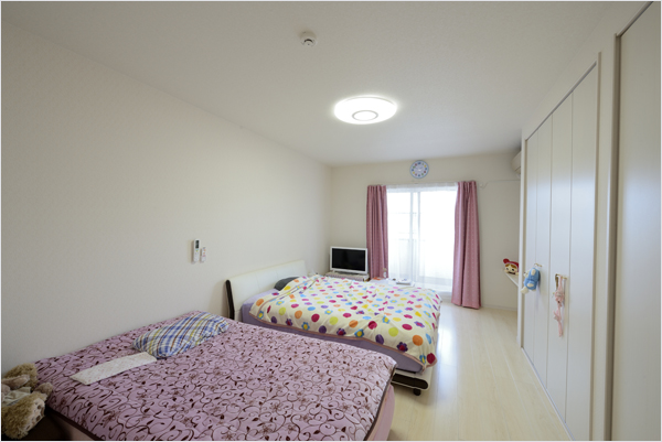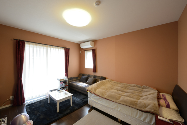 - 居室は、クロスの色を茶系ベースにすることでアジアンテイストな空間を演出しました。