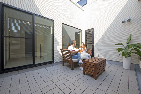 アウトドアリビングのある家。