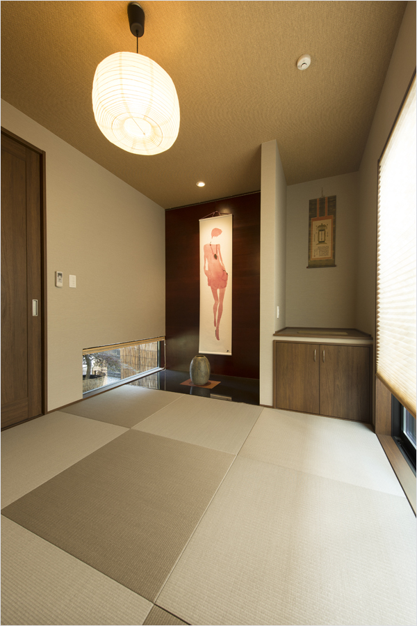 - モダンな雰囲気の和室は、地窓を設置することで、坪庭を眺めることができます。