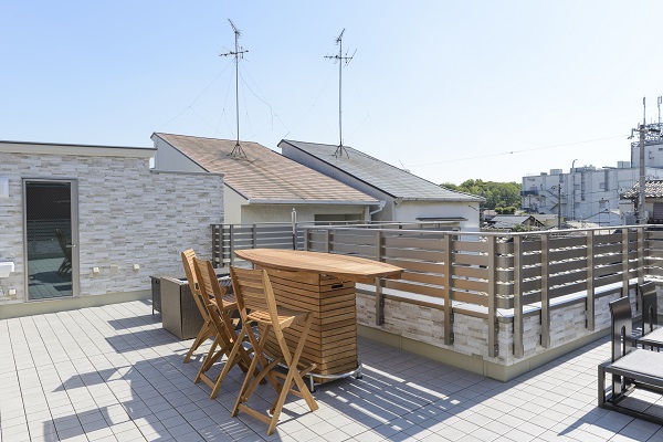 「石」にこだわり高級感を演出し、希望した屋上も叶えた機能的な家。