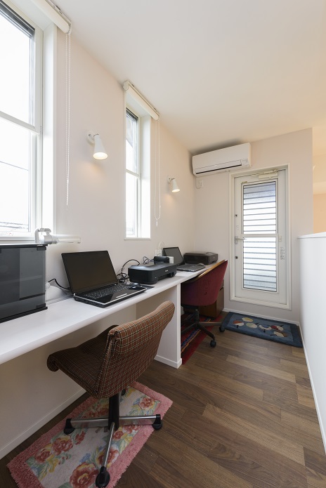 - 2階吹き抜け横に設けたPCカウンターはコミュニケーションも取りやすく便利な空間です。