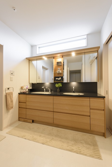 - 美しく、しかも収納が豊富なダブルボールの洗面台は2人並んでも広々つかうことができます。