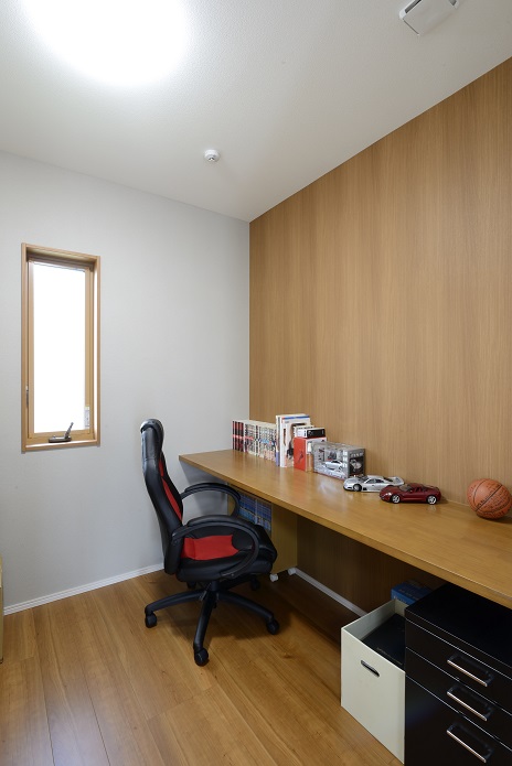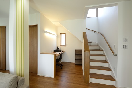 - リビング横の階段下に設けたパソコンスペースは、勉強したりと子どもたちにとって居心地の良い空間になっています。