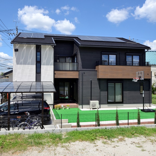 外観は、3色の外壁を使うことで、美しく堂々とした仕上がりになりました。居心地の良いLDKや階段下のパソコンスペースなど、できるだけ家族が顔を合わせる機会が増える間取りにしました。その他にもテラスや趣味スペースなどの希望が叶い、快適に暮らせる家になりました。