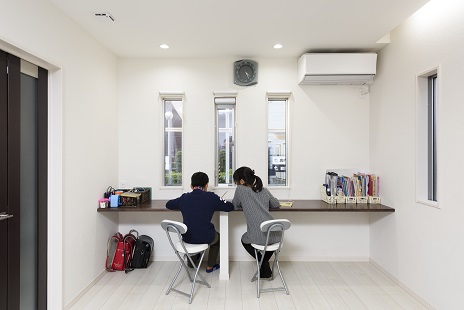 - リビングには、造作のカウンターを設け、目が届く場所で、子どもが勉強できるようにしました。