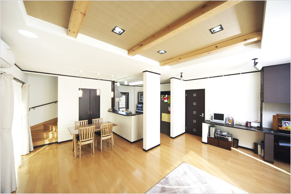 家族がいつも一緒にいられる、お互いを感じられる家にしたいという思いで、家づくりの勉強をしながら、間仕切りの少ない開放的な空間づくりを目指しました。広々していてすっきり暮らしたかったので、収納スペースも工夫しました。