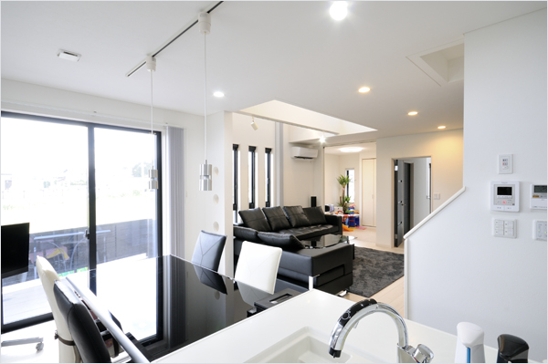 「コミュニケーションが取りやすい家」「家族の気配の感じやすい家」を一番に意識して間取りを決めました。家全体をモノトーンカラーにして統一感を持たせ、窓枠・雨樋の色など細部にもこだわりました。家が広くなって心にゆとりができ、家族と過ごす時間も増えて充実した毎日が過ごせてます。