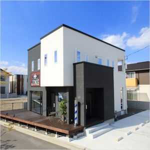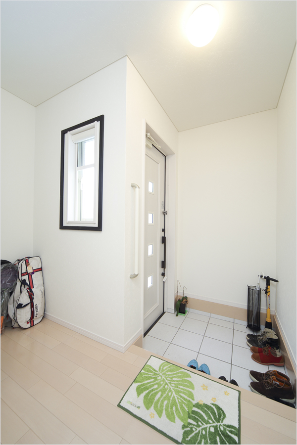 - 住居の部分を目立たせず店舗に見せるため、玄関はなるべく奥の分かりにくい場所に設けました。中に入るとゆとりある広さになっています。