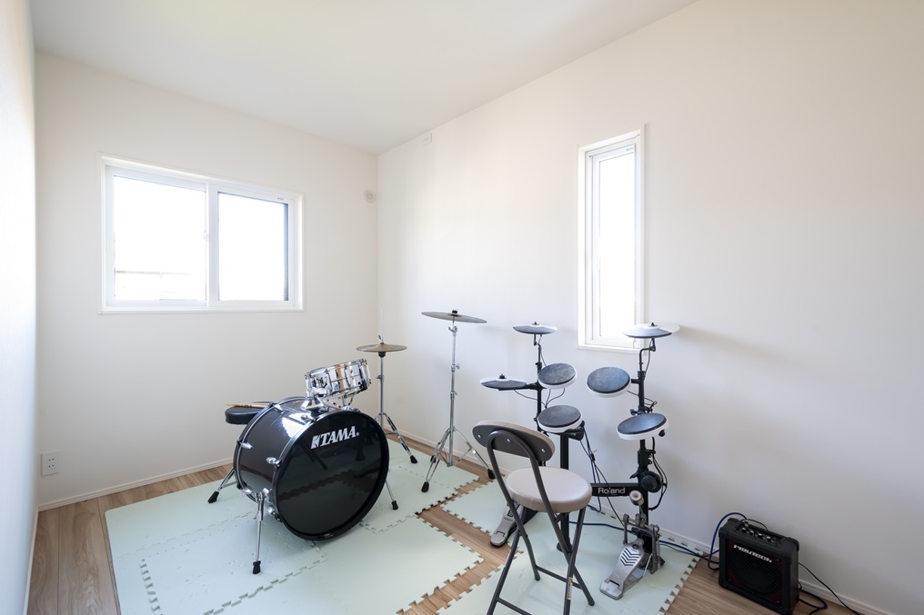家づくり当初から希望していたご主人のドラム演奏スペース。「気密性が高いので、演奏をしても家の外に音がもれにくいのがいいですね」(ご主人)