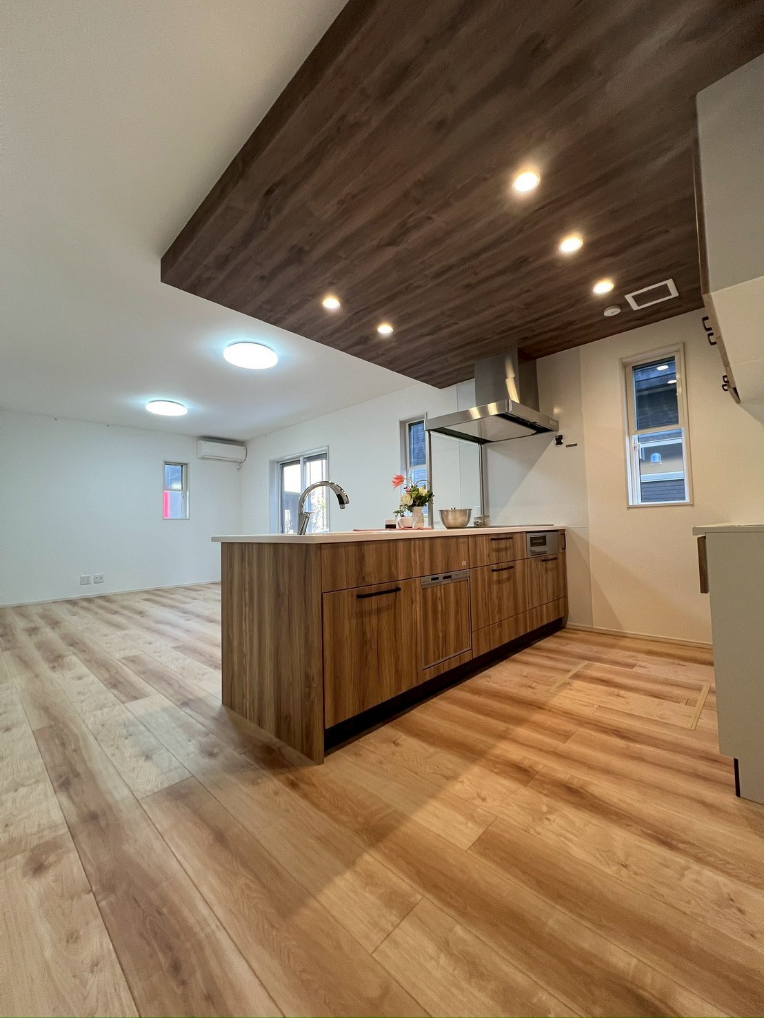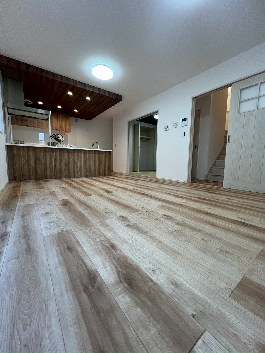 共通の趣味であるバイクを心ゆくまで楽しむために、こだわりを凝縮させたO様邸。1階にはメンテナンスも可能な広々としたガレージを設け、お気に入りの愛車をゆったりと愛でる贅沢な空間を叶えました。2階へ上がると、そこには間接照明が優しく灯るエレガントなLDKが広がります。開放感あふれるバルコニーとつながるリビングは、まさにリゾートのような心地よさ。日々の暮らしを美しく彩る、理想のガレージハウスです。