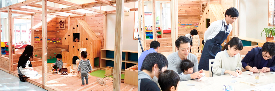 タマホームグループでは国産材の家づくりを通じて、森林環境や地域社会への貢献することを目指しています。その一環として、木育推進の取り組みを2016年から始めています。家づくりの過程では、お客様と何度も打合せを行います。タマホームでは、この打合せの間、お子さまに楽しく過ごして頂くために、一部を除く各店舗にキッズスペースを備えています。そして、木の良さを体験して頂き、国産材使用の意義を考えるきっかけをつくる、という木育推進の考えから、「木っずすぺ~す」というネーミングで、国産材で木質化した木育スペースの設置を進めています。2024年12月末までに、平塚店(神奈川県平塚市)、秦野店(神奈川県秦野市)、津支店(三重県津市)、秋田支店(秋田県秋田市)、姫路営業所(兵庫県姫路市)、立川店(東京都立川市)、清水店(静岡県静岡市)、滝野社店(兵庫県加古川市)、八幡西店(福岡県北九州市)、豊中店(大阪府豊中市)、我孫子店(千葉県我孫子市)、藤枝住宅公園店(静岡県藤枝市)、豊岡営業所(兵庫県豊岡市)、福知山営業所(京都府福知山市)の計14店舗に設置しています。また、地域のNPO法人等と連携し、「木っずすぺ~す」を活用した木育イベントにも取り組んでいます。「木っずすぺ~す」がお客様や地域の皆様に活用されることを通じて、森林環境保護の一助となることを願い、引き続き設置に取り組んでいきます。