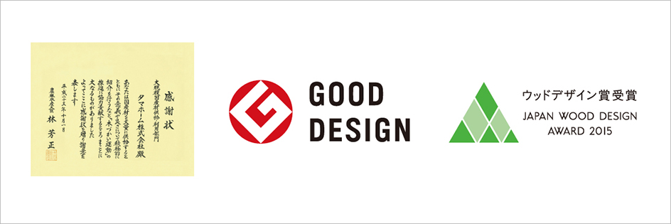 2013年度には農林水産大臣より「木づかい運動感謝状」が授与され、同年にはグッドデザイン賞を受賞。2015年度にはウッドデザイン賞を受賞しました。