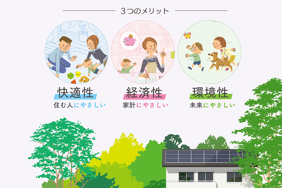 また、1年を通じて心地よい住環境を実現するとともに、居住時に発生するエネルギー消費量の抑制を通じ、結果としてCO2を削減できる環境に優しい家づくりを実現しています。