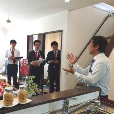 - 配属後は、エルダー社員によるOJTを中心とした教育を受け、各職種に必要な専門知識などを身につけていきます。例えば営業職では、先輩社員の営業に同行し、お取引先(不動産業者・銀行・土地家屋調査士・職人など)との関係を築くとともに、商談や打ち合わせに同席することで商談から着工~引き渡しまでの流れや、プランニングスキル、住宅ローン、登記といった家づくりに関する知識を学んでいきます。工務職では、先輩社員の現場に同行し現場での清掃や近隣の挨拶回り、お客様やお取引先との打ち合わせ、図面の見方、部材の発注など業務に必要なスキルを少しづつ覚えていき、1人で現場を担当してからも先輩社員に現場をチェックしてもらったり、打ち合わせに同席してもらい、業務を学んでいきます。