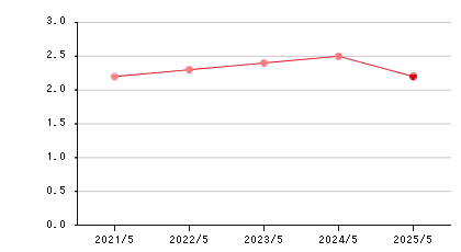 | 総資産回転率 | 2.2 | 2.3 | 2.4 | 2.5 | 2.2 |