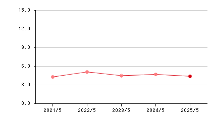 | 棚卸資産回転率 | 4.3 | 5.1 | 4.5 | 4.7 | 4.4 |
