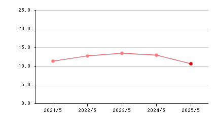 | 固定資産回転率 | 11.4 | 12.8 | 13.5 | 13.0 | 10.7 |