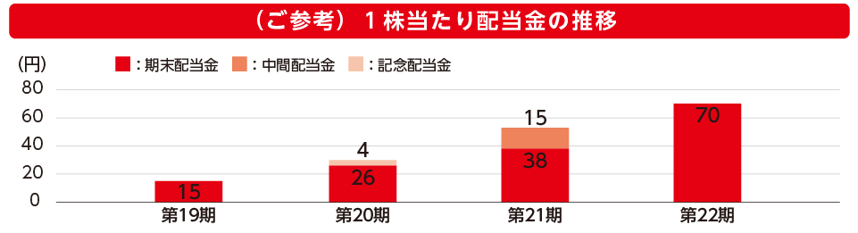 当社では、株主様に対する利益の還元を経営上重要な施策の一つとして位置付け、将来の積極的な事業展開と経営体質の一層の強化に必要な内部留保を確保しつつ、安定配当を継続することを基本方針としております。 当期の剰余金の配当につきましては、当期の業績並びに今後の事業展開等を勘案いたしまして、下記のとおりといたしたいと存じます。