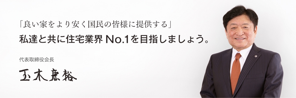 急成長を続けている会社であるからこそ、そういった方々へのたくさんのポストと大きなチャンスがあります。私達は、これからも良い家をより安く国民の皆様に提供し続けます。 私達と共に住宅業界No.1を目指しましょう。