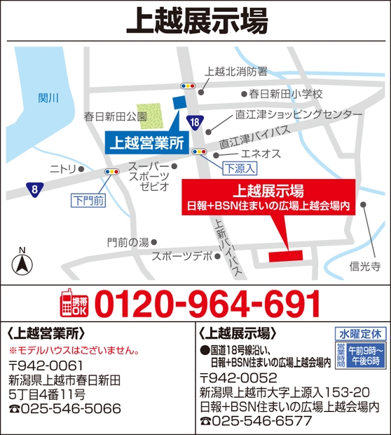 ■住 所 :新潟県上越市大字上源入153-20 日報+BSN住まいの広場上越会場内