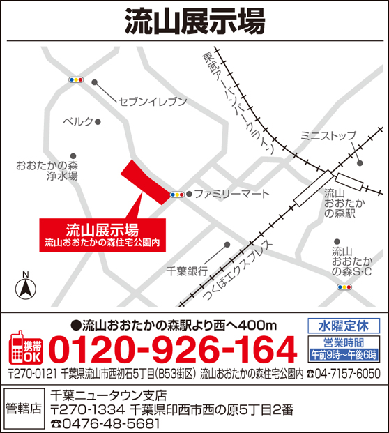 ■住 所 :千葉県流山市西初石5丁目(B53街区)流山おおたかの森住宅公園内