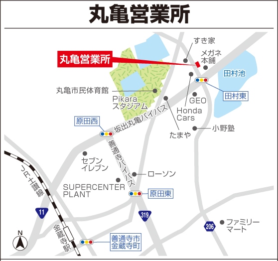 丸亀営業所は8月10日(土)に【移転グランドオープン】するため、 8月9日(金)以前にご来場の方は下記移転前住所へお越しください。