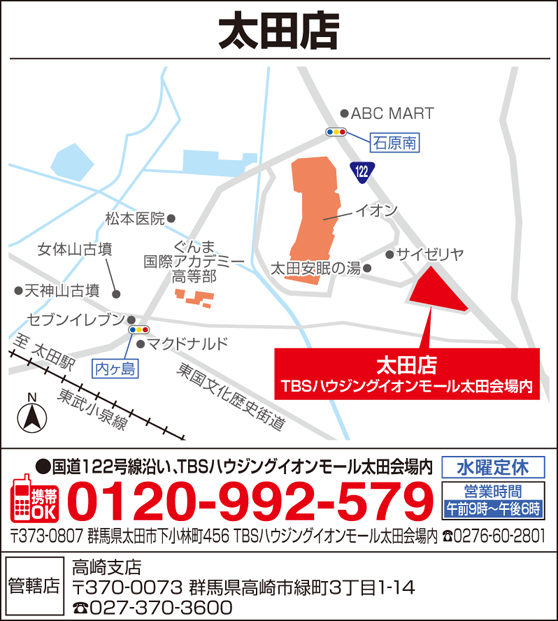 ■住 所 :群馬県太田市下小林町456 TBSハウジングイオンモール太田会場内