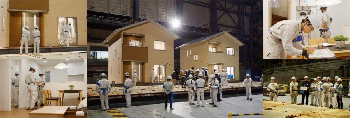 今回の実験で用いた2階建て建物「大安心の家」は、標準仕様の耐震等級3(最高等級)の構造で設計。世界最大級の振動台テーブル上で加振、検証実験を行いました。2016年熊本地震と同レベルの強振動を複数回におよび加えた結果、弊社の住宅商品である「大安心の家」は、数百年に一度発生するとされる震度7相当の大地震にあったとしても、倒壊・半壊しないレベルの高耐震性を確保していることが証明されました。今後は、当実験の結果レポートを検証し、更なる商品開発に活かしていきます。