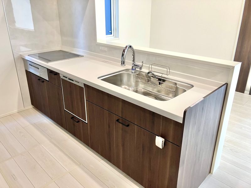 キッチンにはビルトインタイプの食器洗浄機を内蔵。高温洗浄で食器の殺菌も出来て、家事の負担も減らしてくれます。オール電気でお子様も安全に家事をお手伝い。