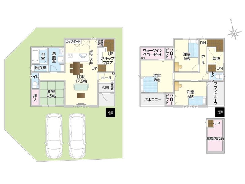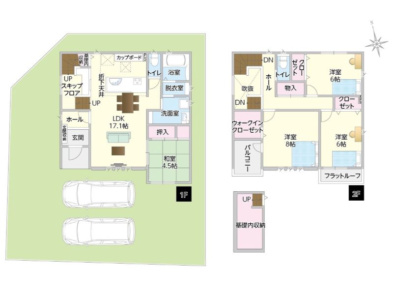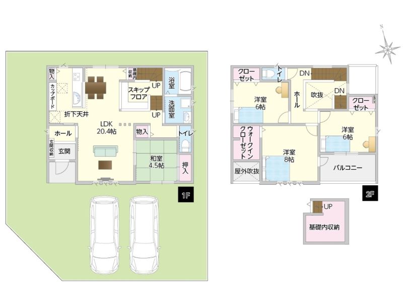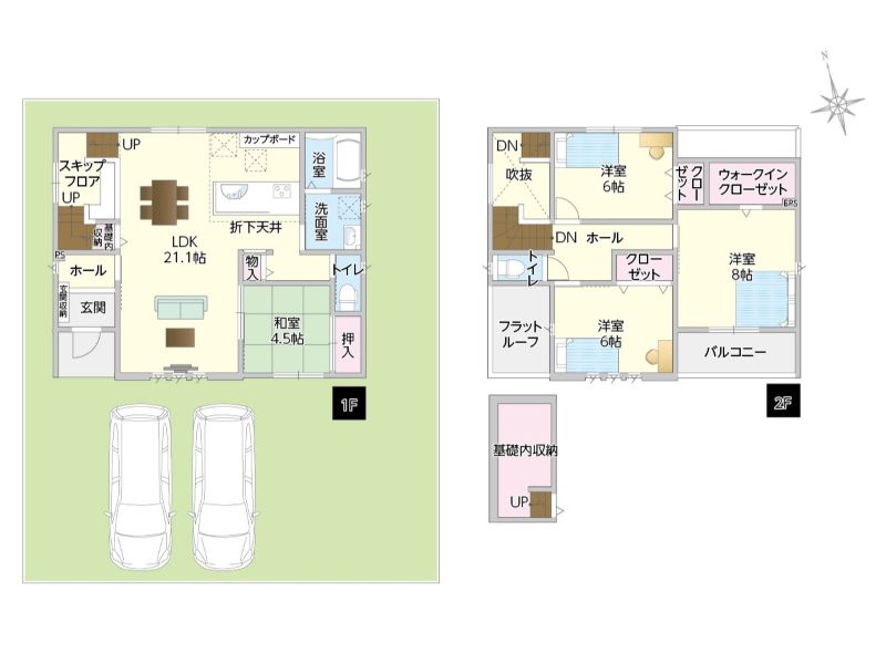 長期優良住宅仕様/即引渡可能/駐車場2台以上可/浴室乾燥機/LDK15帖以上/対面式キッチン/カップボード二型/食洗器/ウォークインクローゼット/和室/全居室収納付き/トイレ2カ所/スキップフロア/半地下収納付き