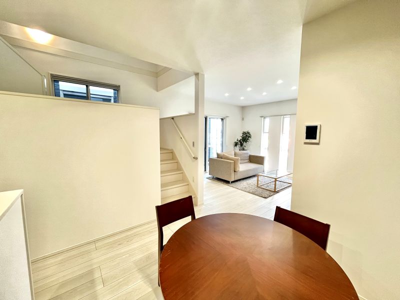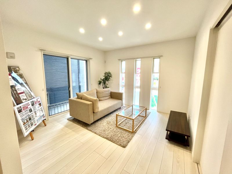 【リビング】南面のリビングルームでは、朝は柔らかく、午後は明るい日差しが入り、時間の進みを感じれるリビングに!明るく落ち着くリビングは「家族が集まりたくなる空間」を演出しています。