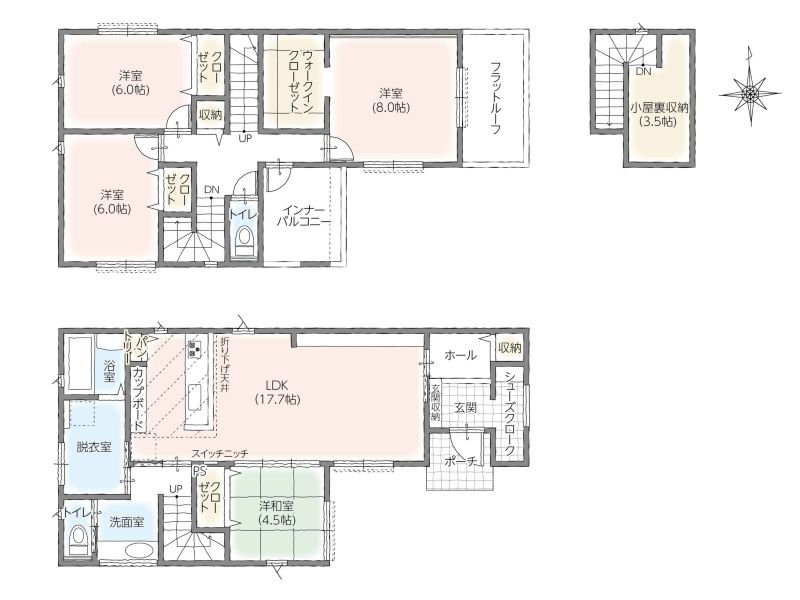 | 延床面積 | 119.24㎡(36.06坪)・124.21㎡(37.56坪) |
