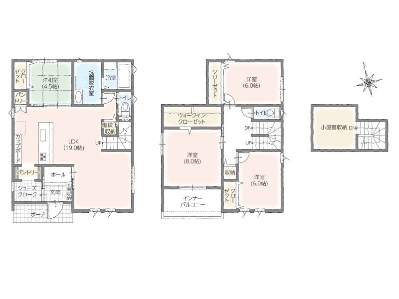 | 延床面積 | 116.13㎡(35.12坪)・118.41㎡(35.81坪) |