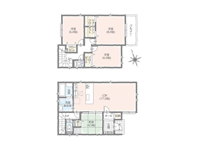 | 延床面積 | 99.36㎡(30.05坪)~104.75㎡(31.68坪) |
