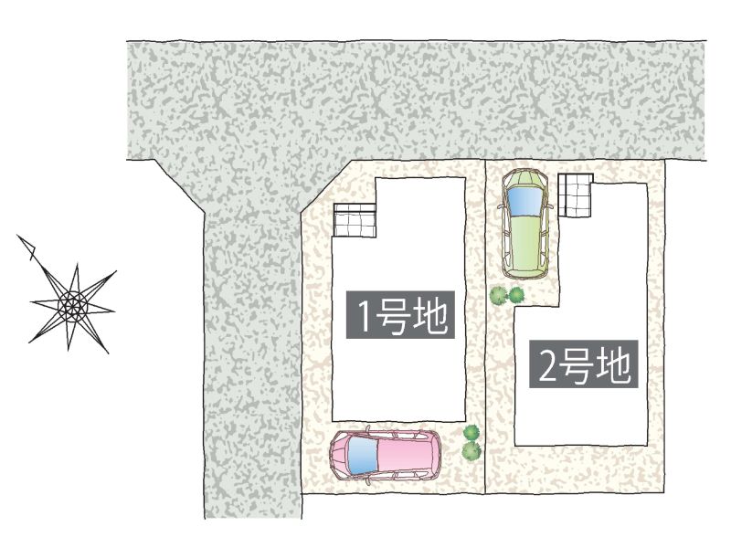 | 土地面積 | 1号棟:100.09㎡(30.27坪) 2号棟:100.11㎡(30.28坪) |