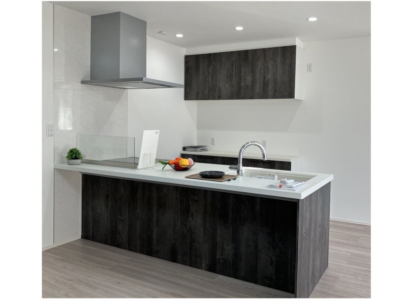 【ペニンシュラキッチン】ワークトップも広いので、お料理本を広げたり、お子様と並んで一緒に料理を作ることもできます。IHのため火災や火傷の心配も減少されます。(写真はイメージとなります)