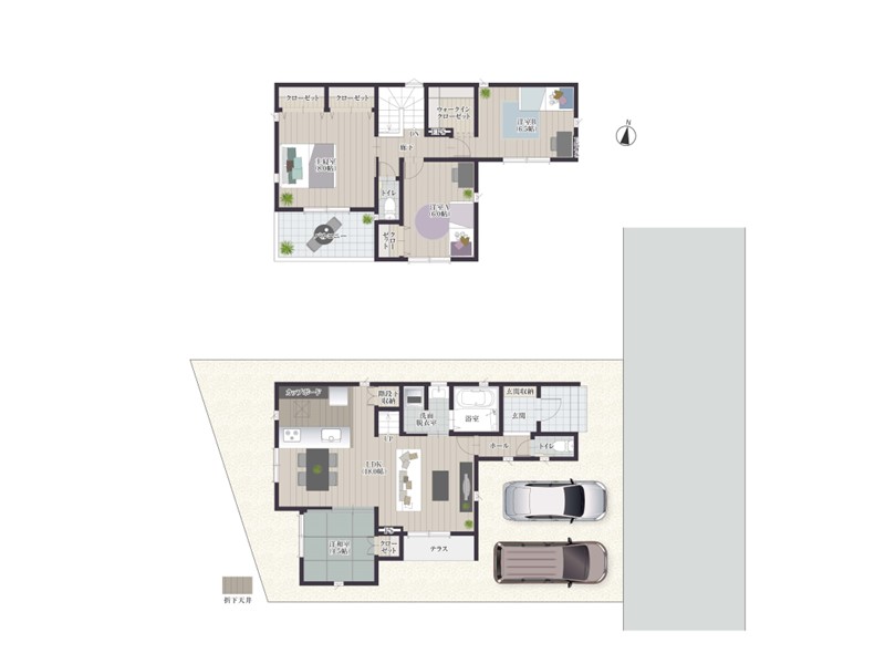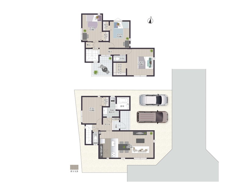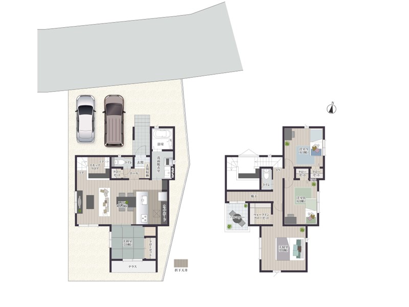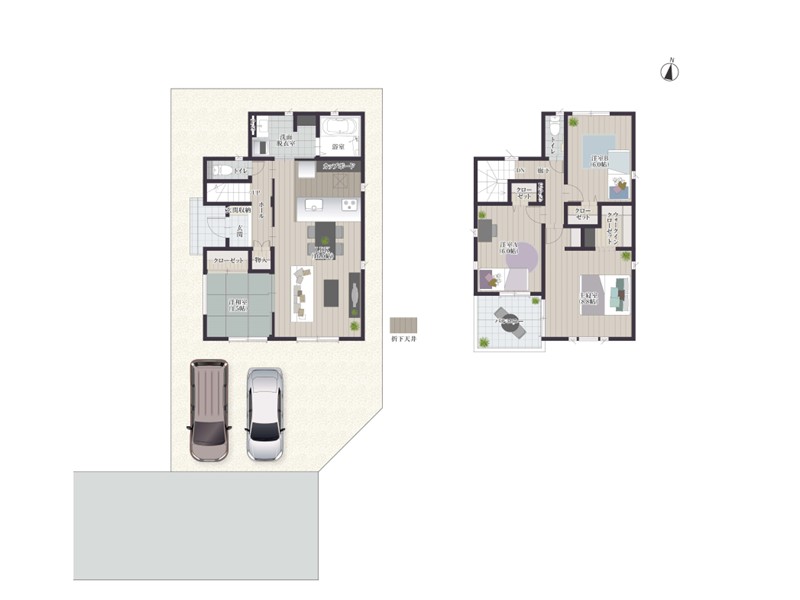 全棟、駐車スペースを2台分確保!お車を2台持ちのお客様やお友達が遊びに来た時も便利です♪