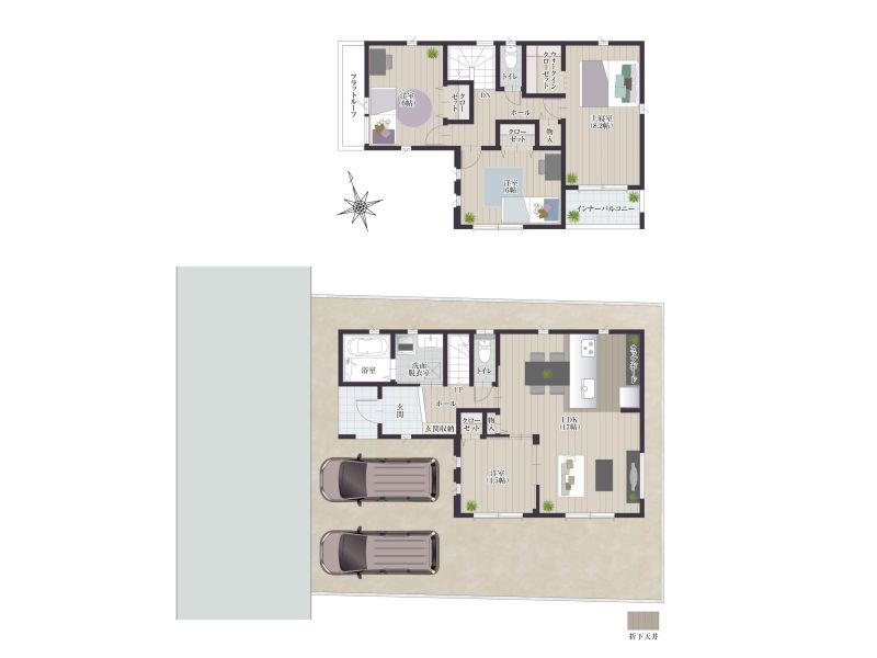 【区画図】全棟、駐車スペースを2台分確保!お車を2台お持ちのお客様やご友人が遊びに来た時も便利です♪