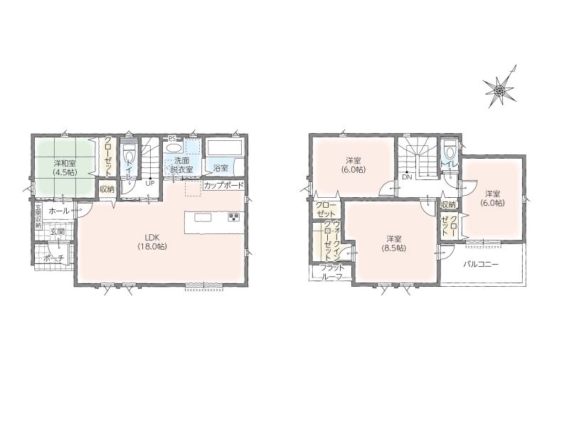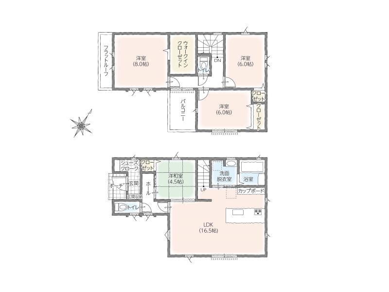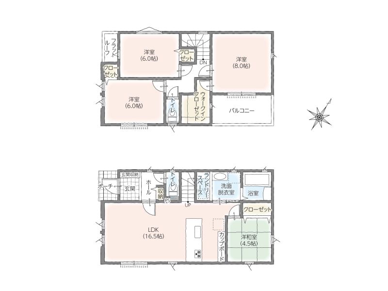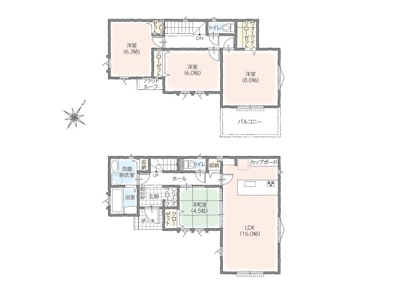 | 私道負担・道路 | 無・北側5m幅、東側4.5m幅、南側6m幅 |