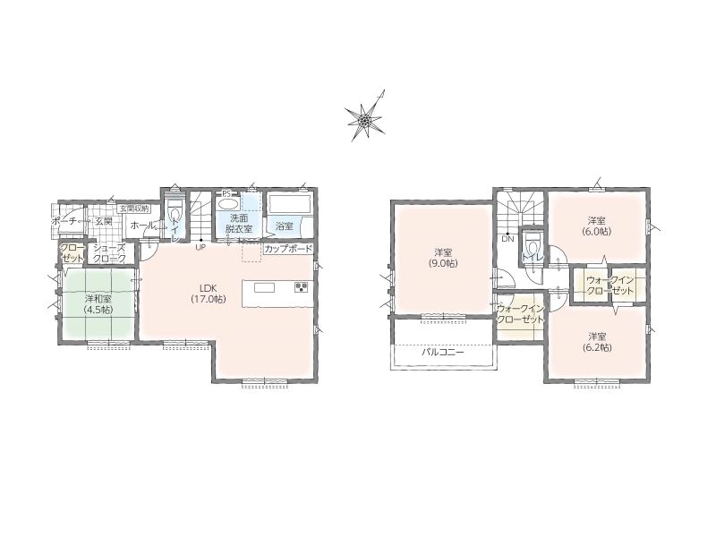 | 延床面積 | 99.36㎡(30.05坪)~102.47㎡(30.98坪) |