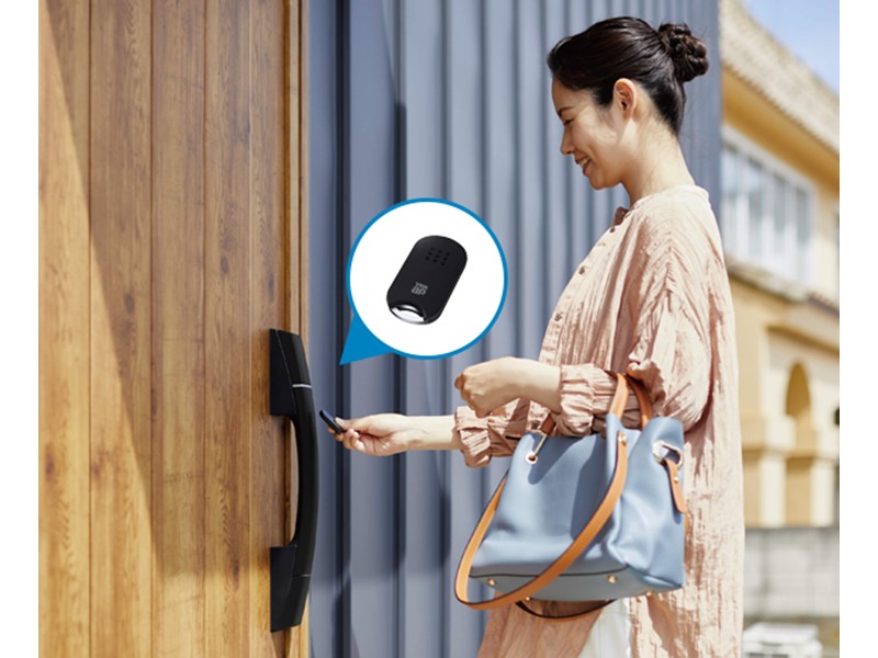 【スマートコントロールキー】全棟に採用。大きな荷物で手がふさがっていてもタッチ1回で楽々施解錠ができます(※イメージ)。