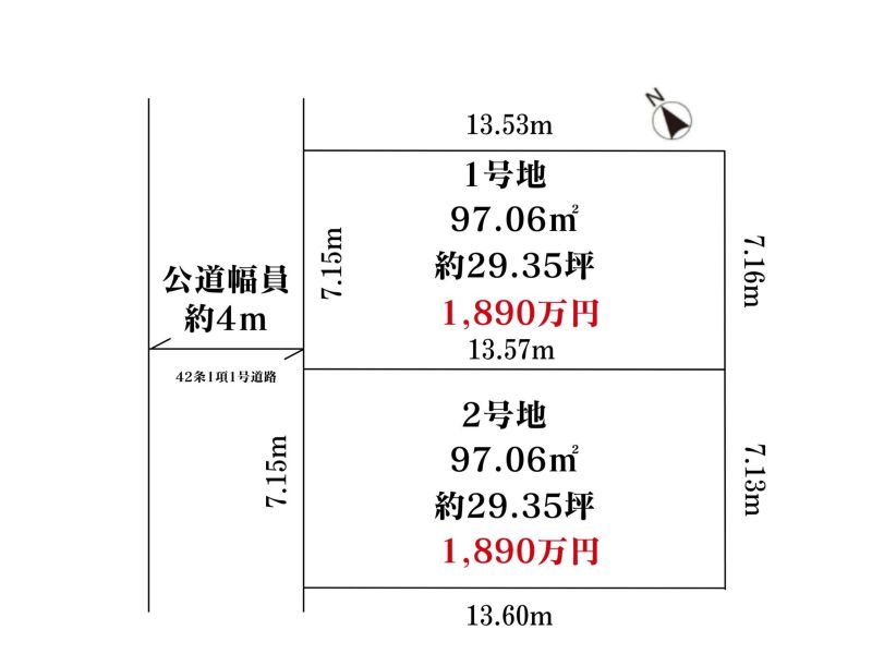 | 価格 | 1号地:1,890万円 2号地:1,890万円 |